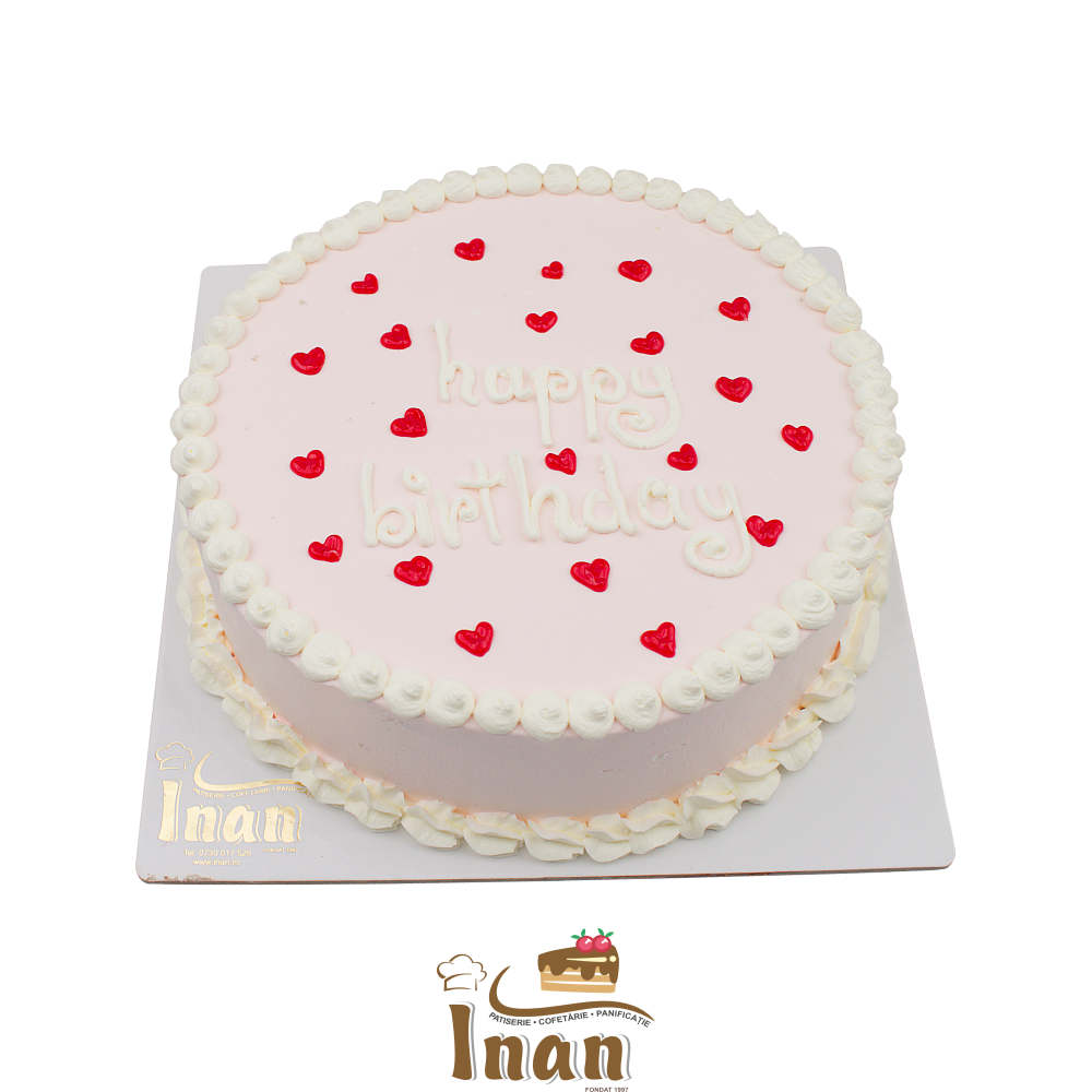 inimioare, Tortul în Frişcă este o declarație de iubire pentru cei care adoră ciocolata, acesta aduce o notă de rafinament şi feminitate la aniversări.