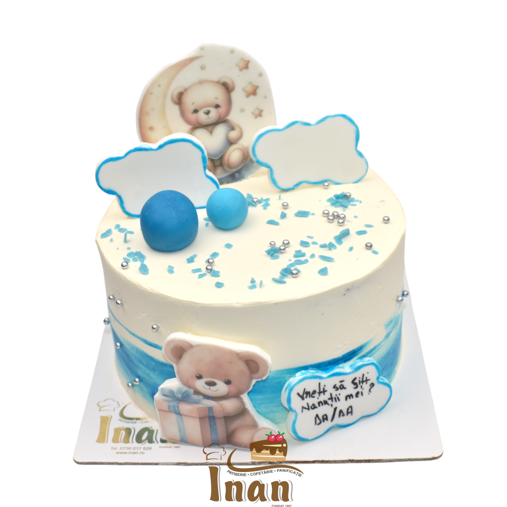 Mic, rafinat şi savuros Tortul Personalizat Printat cu Ursuleţi şi Norişori este cadoul perfect pentru alegerea părinţilor spirituali ai micuţului tău, un moment intim care se transformă într-o amintire perenă , dar totodată dulce.